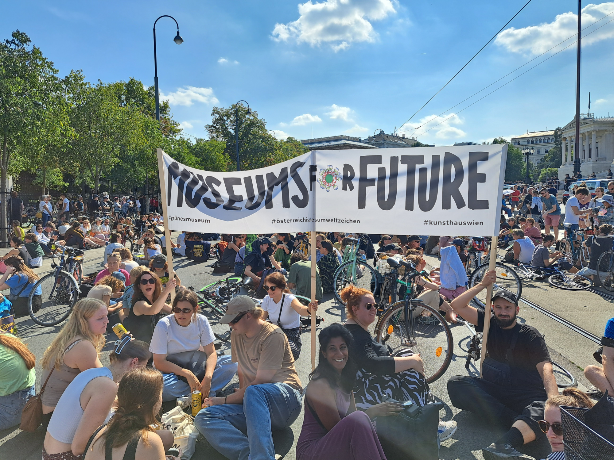 Als Teil der Bewegung Museums for Future engagiert sich das KunstHausWien für wirksamen Klimaschutz und das 1,5-Grad-Ziel des Pariser Abkommens. Auch ohne lokales Bündnis bleiben wir ein aktives Sprachrohr für ökologische und gesellschaftspolitische Verantwortung im Kulturbereich. Als Grünes Museum schaffen wir Raum für Diskussionen mit Künstlerinnen, Wissenschaftlerinnen und Aktivist*innen – für eine nachhaltige Zukunft für alle.